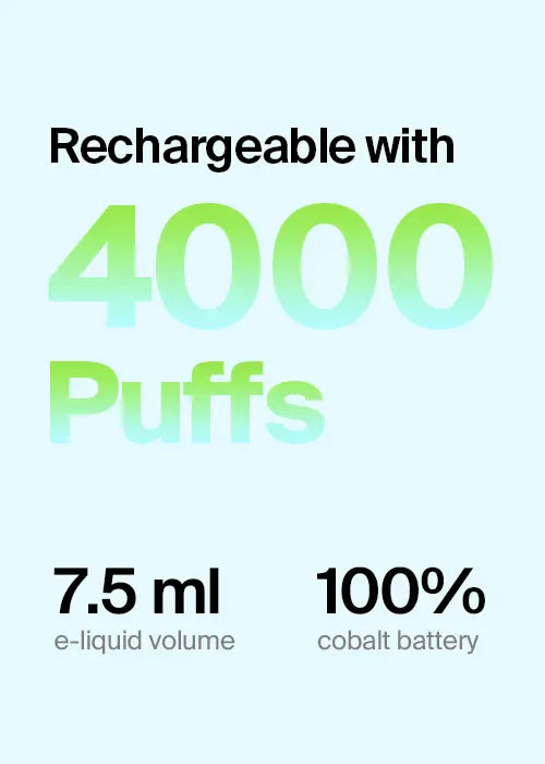 Dimensions (mm):107 x 20 x 20 Weight:32.4 g Atomizer: Ceramic Battery Capacity:530 mAh Puff Count:4000 E-liquid Volume:7.5 ml